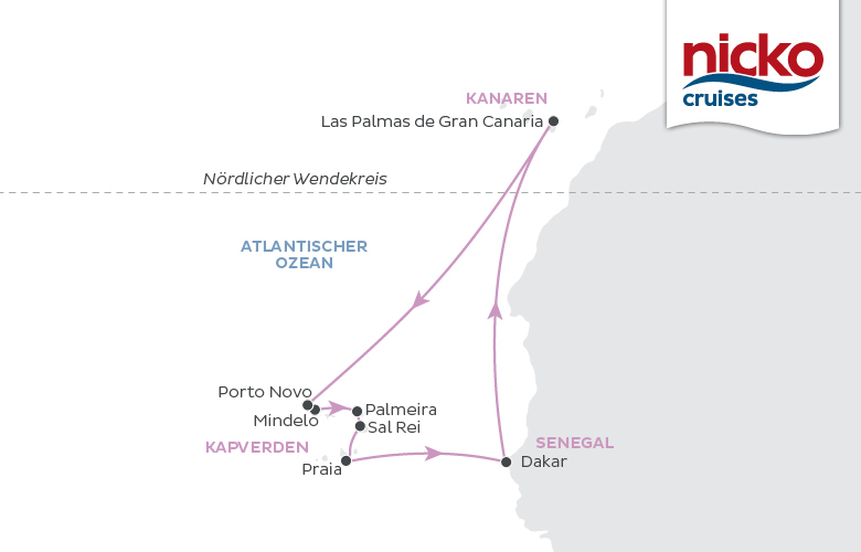 Diese Kreuzfahrt ist perfekt, wenn Sie Unbekanntes entdecken wollen, kurze Flugstrecken schätzen sowie Sonne und Wärme im kalten Winter suchen. Ein fein abgestimmter Mix aus entspannenden Seetagen und erlebnisreichen Landgängen verspricht einen erholsamen und gleichwohl intensiven Urlaub. Von Gran Canaria steuern wir die Kapverden an. Keine Insel gleicht der anderen, Sie lernen fünf der schönsten kennen: Santo Antão, São Vincente, Sal, Boa Vista und Santiago. Dakar bietet spannende Einblicke in die afrikanische Lebensart.
